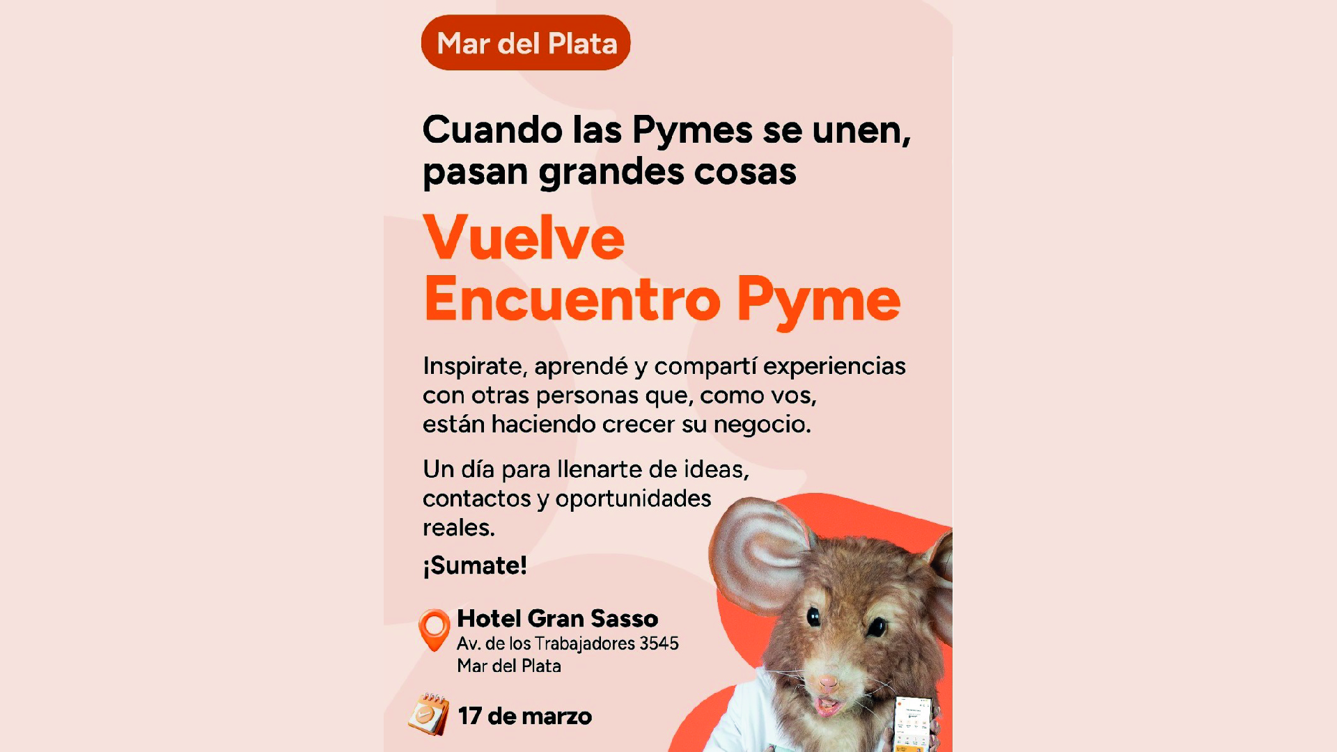 Las Pymes que se conectan, crecen juntas. Te invitamos a un encuentro presencial para compartir ideas, descubrir oportunidades y fortalecer tu negocio.